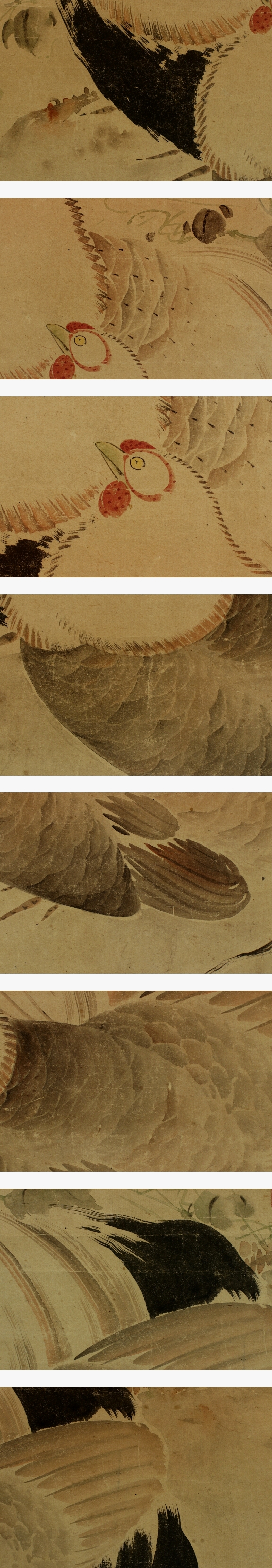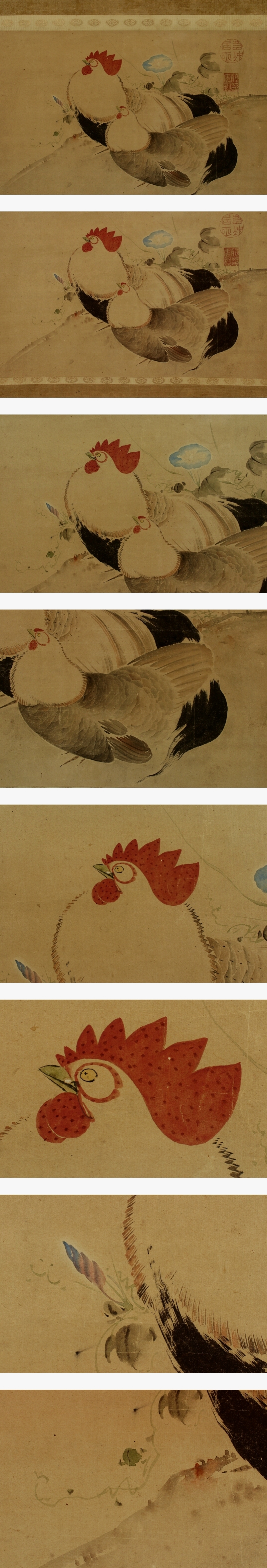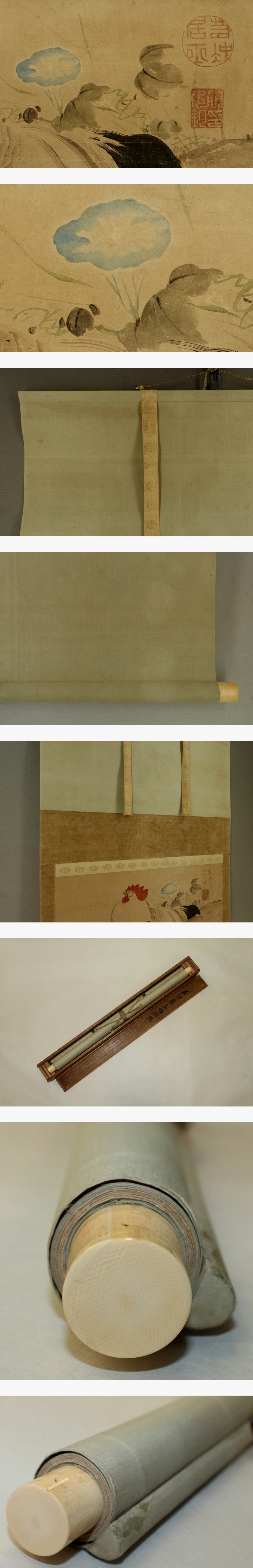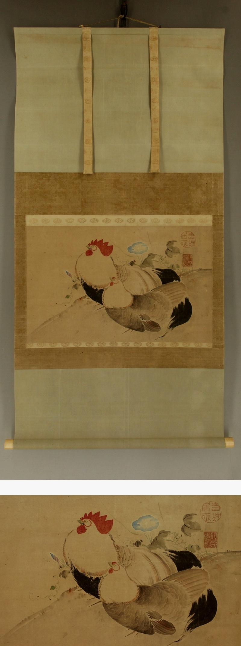 - 【模写】伊藤若冲【鶏図】◆紙本◆合箱◆掛軸 r05007