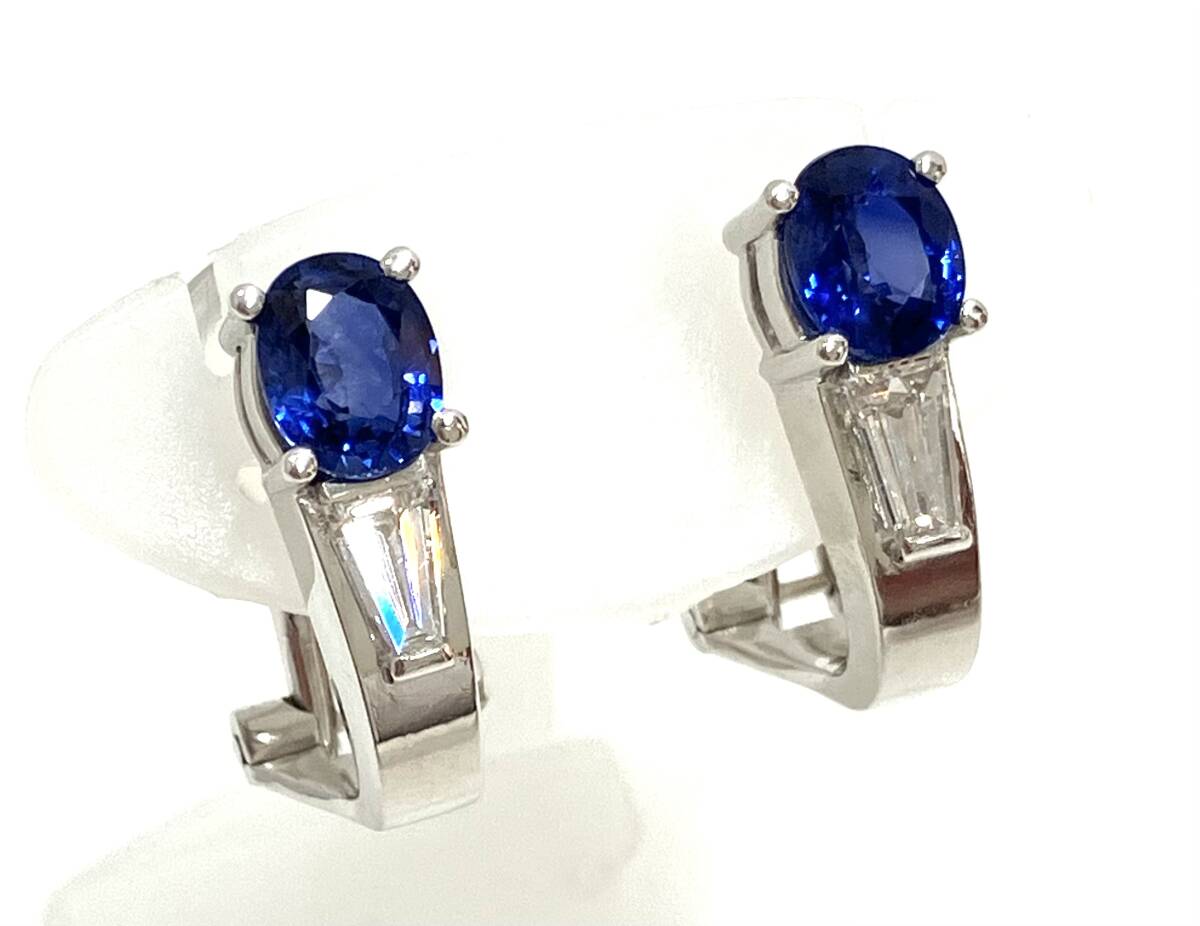 > K18WG 750 ブルーサファイア0.67ct 0.70ct ダイヤ0.13ct 0.17ctイヤリング 6.0g ソーティング付き