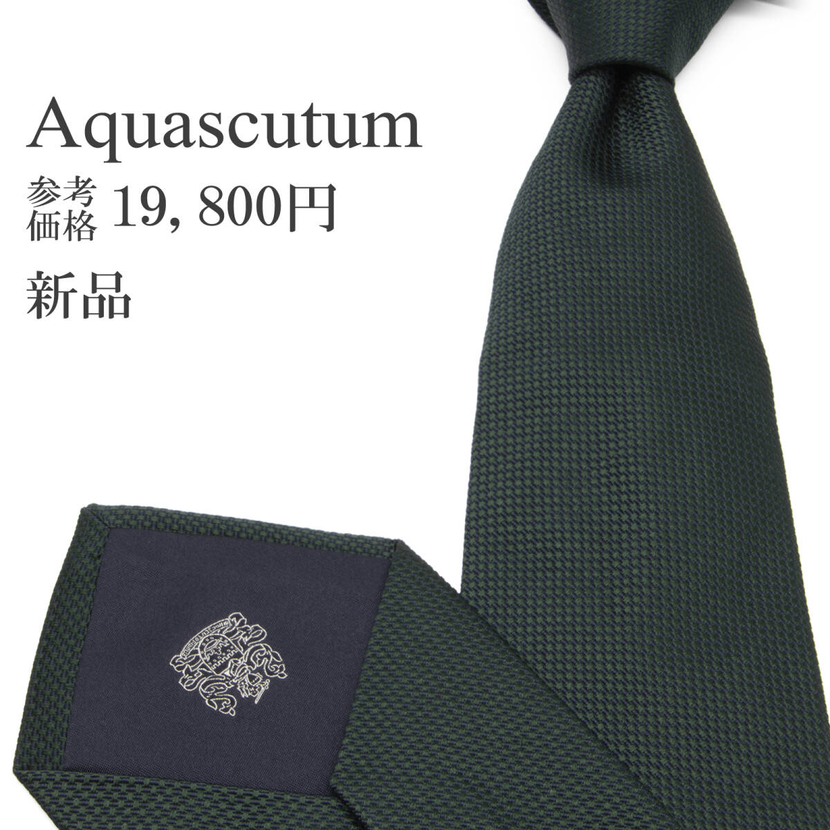 - 送料無料 アクアスキュータム ネクタイ ジャガードタイ 新品 シルク 緑 紺色 ネイビーブルー 無地 ソリッド 肉厚 ブランド イタリア製 P199