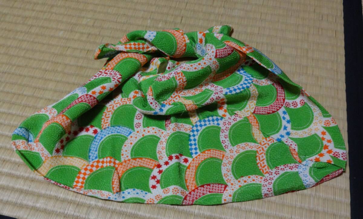 - 黄緑波模様縮緬小物入れ(風呂敷・手提げ)