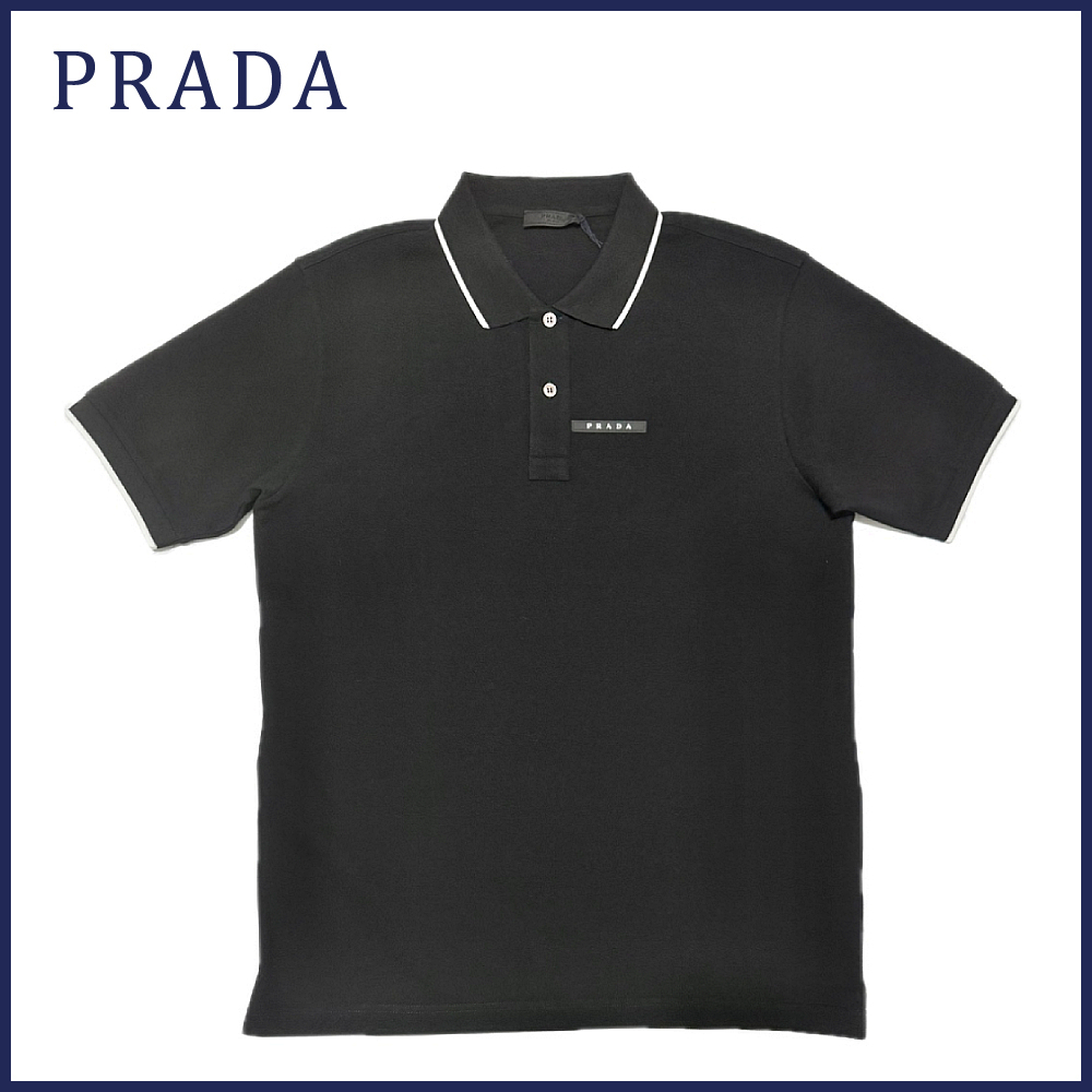 - 新品プラダPRADAメンズ定番 鹿の子半袖ポロシャツ 黒#XL●