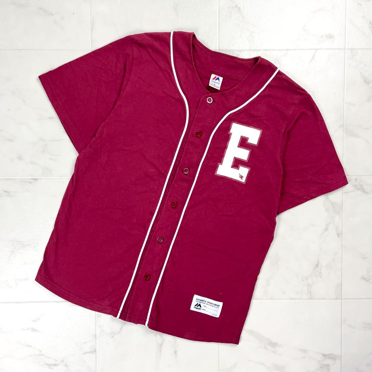 - 楽天イーグルス 応援ユニフォーム Rakuten マジェスティック製 ベースボールシャツ 半袖 えんじ ワインレッド サイズML*ED157