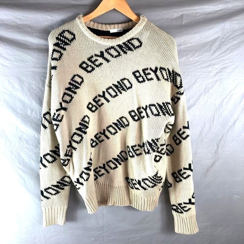 - ジェイダ GYDA ニット 長袖 英字柄 サイドポケット Uネック ベージュ Fサイズ 2025052400071