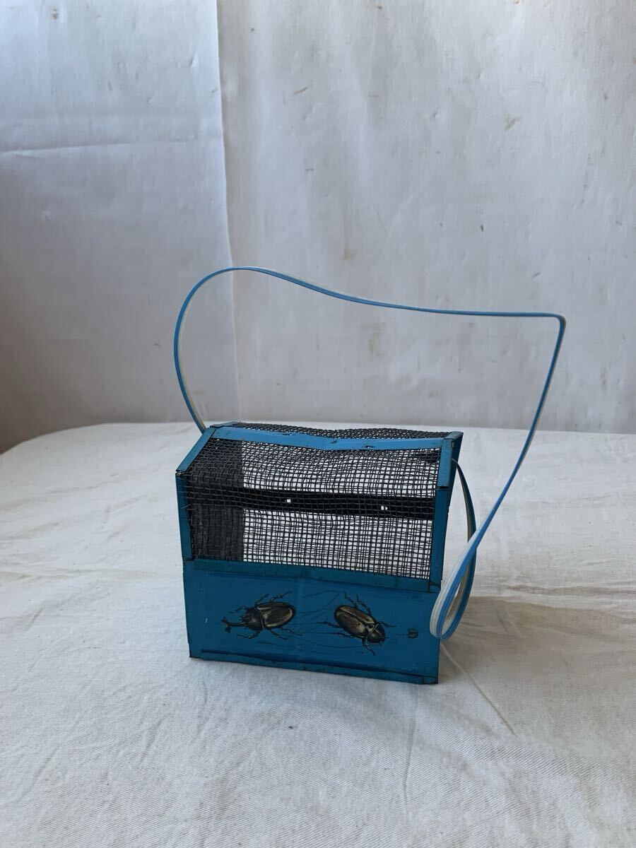 - 経年の雰囲気が素敵な古いブリキ製虫籠カゴ 昆虫昭和レトロコレクションインテリアディスプレイアンティークビンテージ小物入れ夏休み雑貨