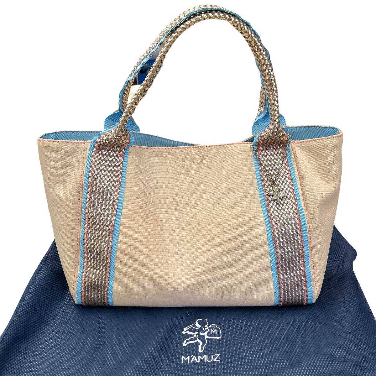 - MAMUZ マミューズ トートバッグ ハンドバッグ キャンバス ベージュ 水色 レディース