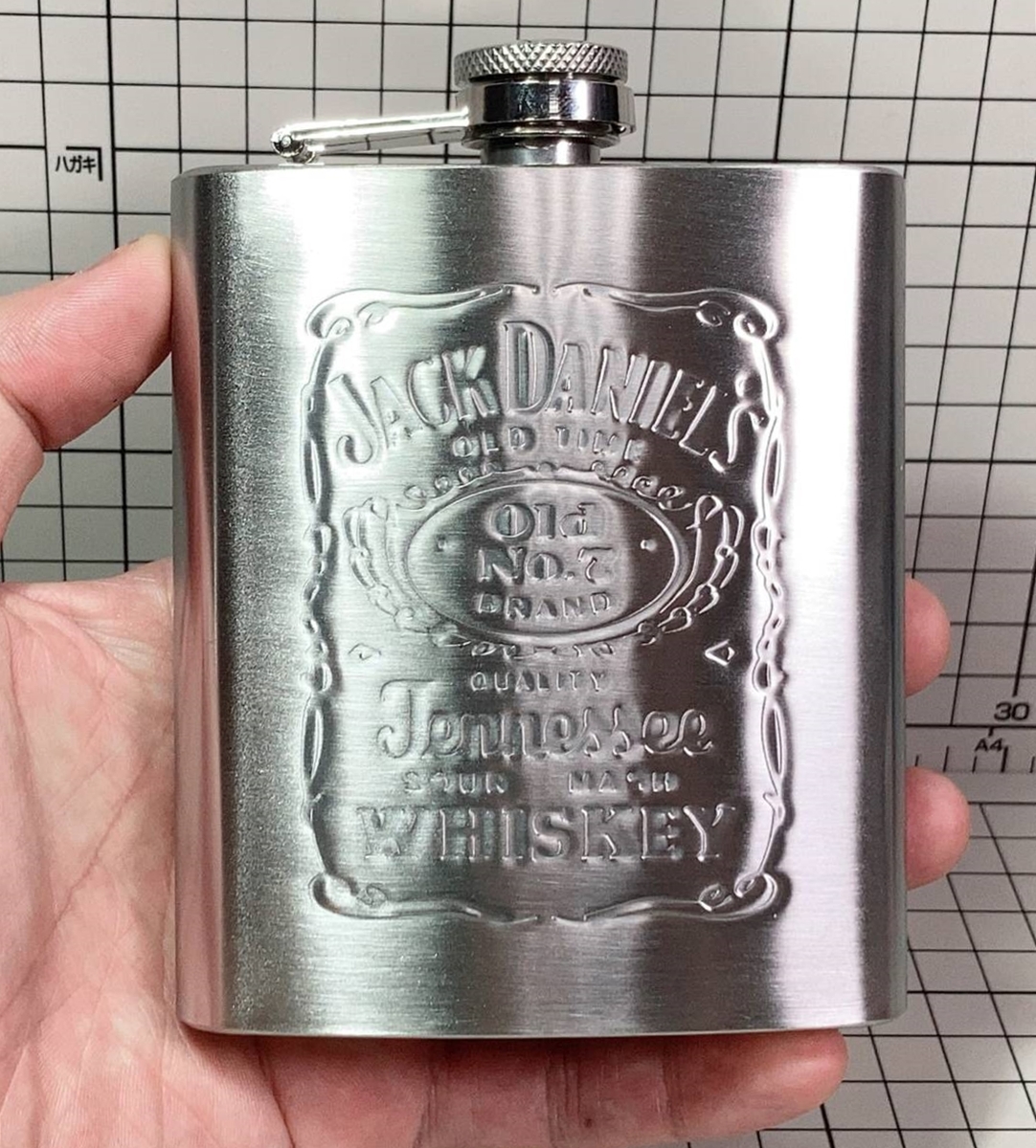 - ▲棚:V_H7【ウィスキーフラスコ:スキットル:水筒 ジャック・ダニエル Old No.7 容量7オンス #シルバー】sa_wjig S07-31