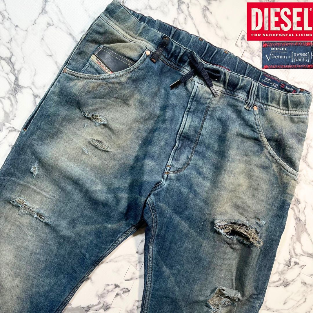 - 美品/レザー切替/(2XL位)/ストレッチ性◎●DIESEL ディーゼル ジョグジーンズ KROOLEY デニム パンツ インディゴ ブルー ジーンズ 青 jogg