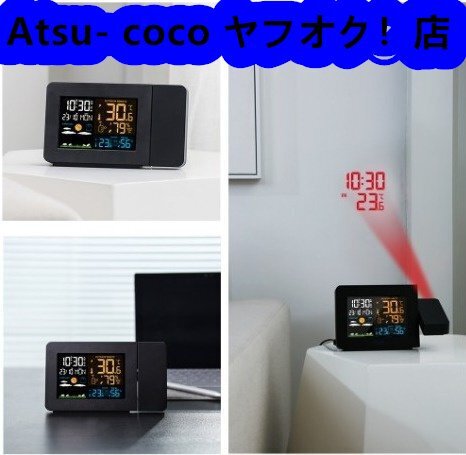- 電波時計 ウェザーステーション 置き時計 デジタル時計 警報 投影 時計 温度計 湿度計 LED 屋外センサー付き