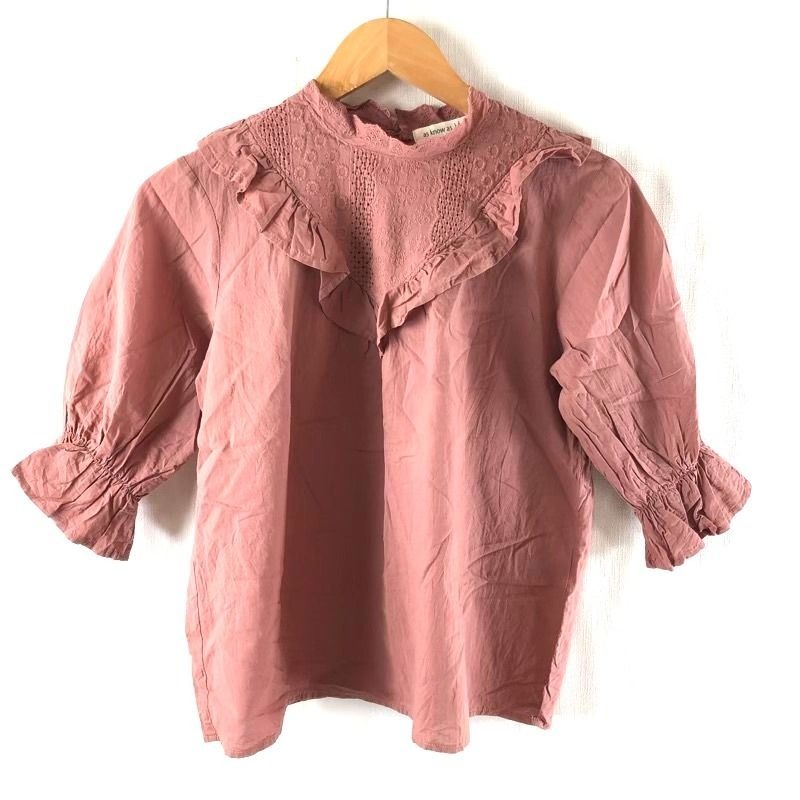 - アズノゥアズ AS KNOW AS カットソー 長袖 五分袖 袖フリル 刺繍 綿100% ピンクベージュ 2025071000177