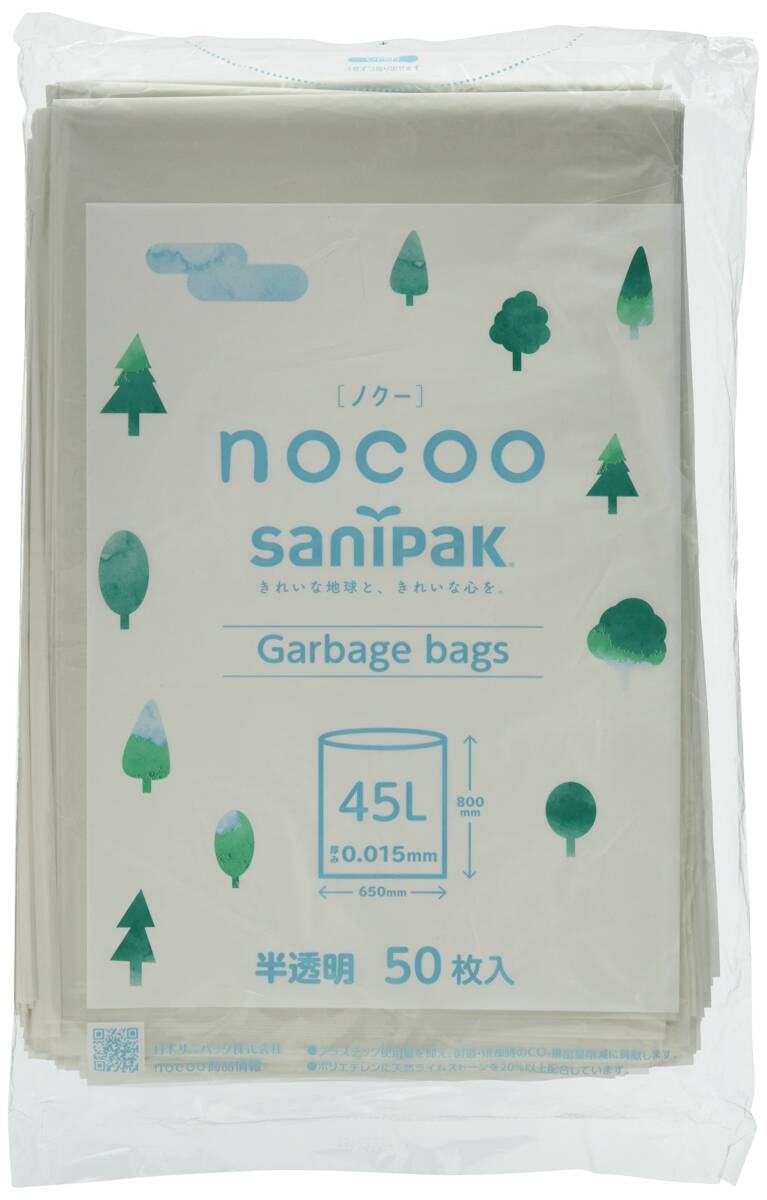 - CN45 nocoo(ノクー) 45L50P 半透明 容量50マイ 日本サニパック ゴミ袋・ポリ袋