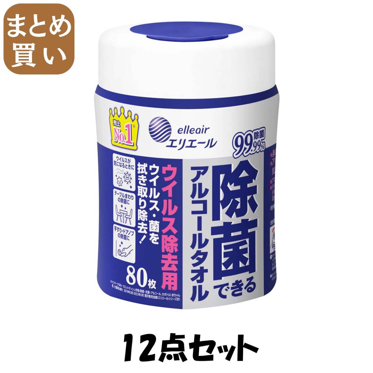- 【まとめ買い】エリエール ウェットティッシュ 除菌 ウイルス除去用 アルコールタイプ ボトル 本体 80枚入