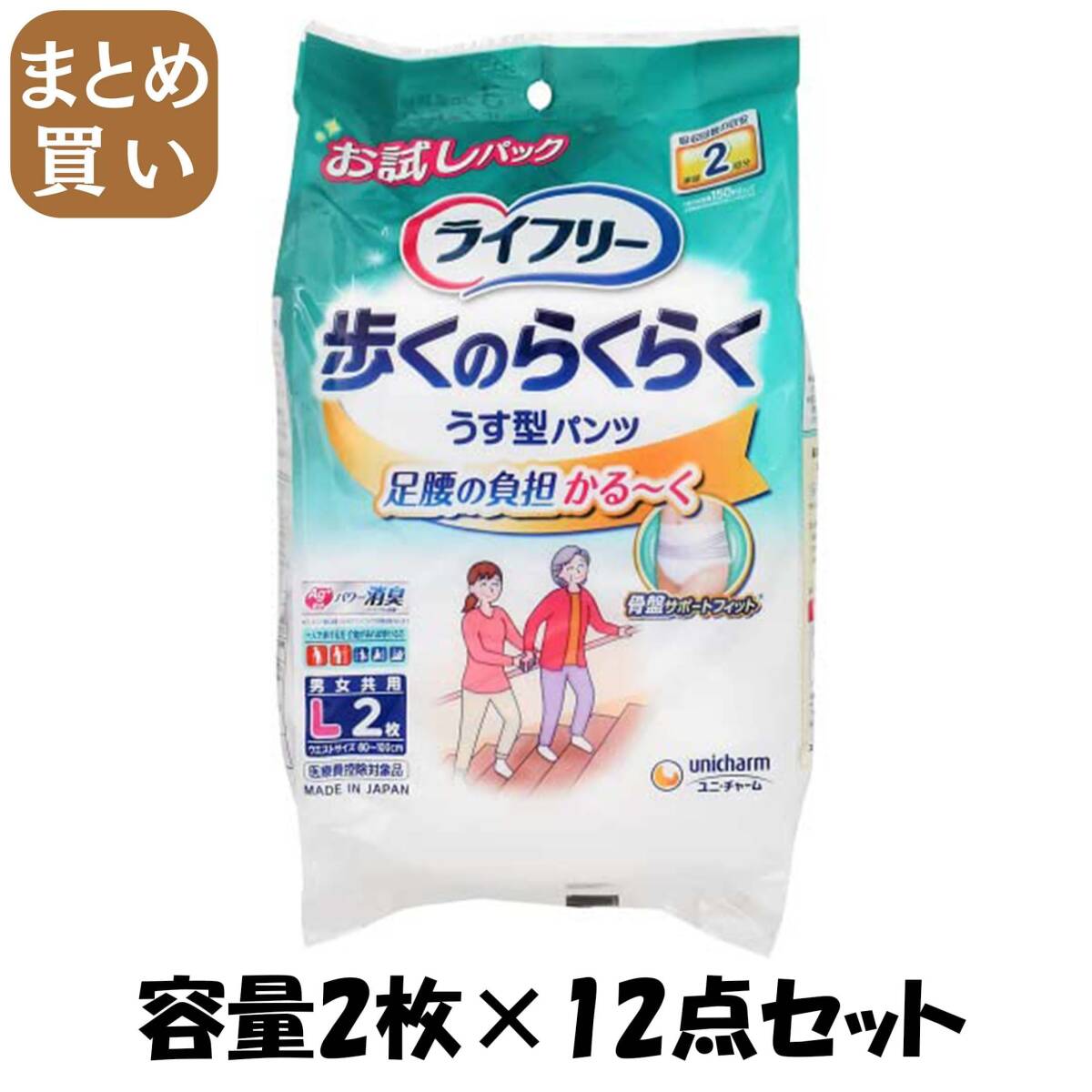 - 【まとめ買い】ライフリー歩くのらくらくうす型パンツ2回L2枚 容量2マイ×12点セット ユニ・チャーム 大人用オムツ