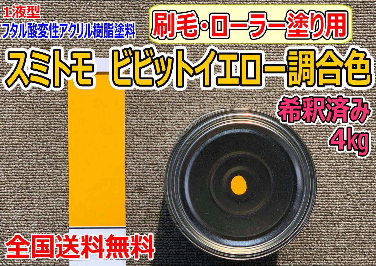 > (在庫あり) スミトモビビットイエロー調合色 刷毛・ローラー用 希釈済み 4kg 超速乾 重機塗装 重機色 建機色 バックホーン ユンボ 送料無料