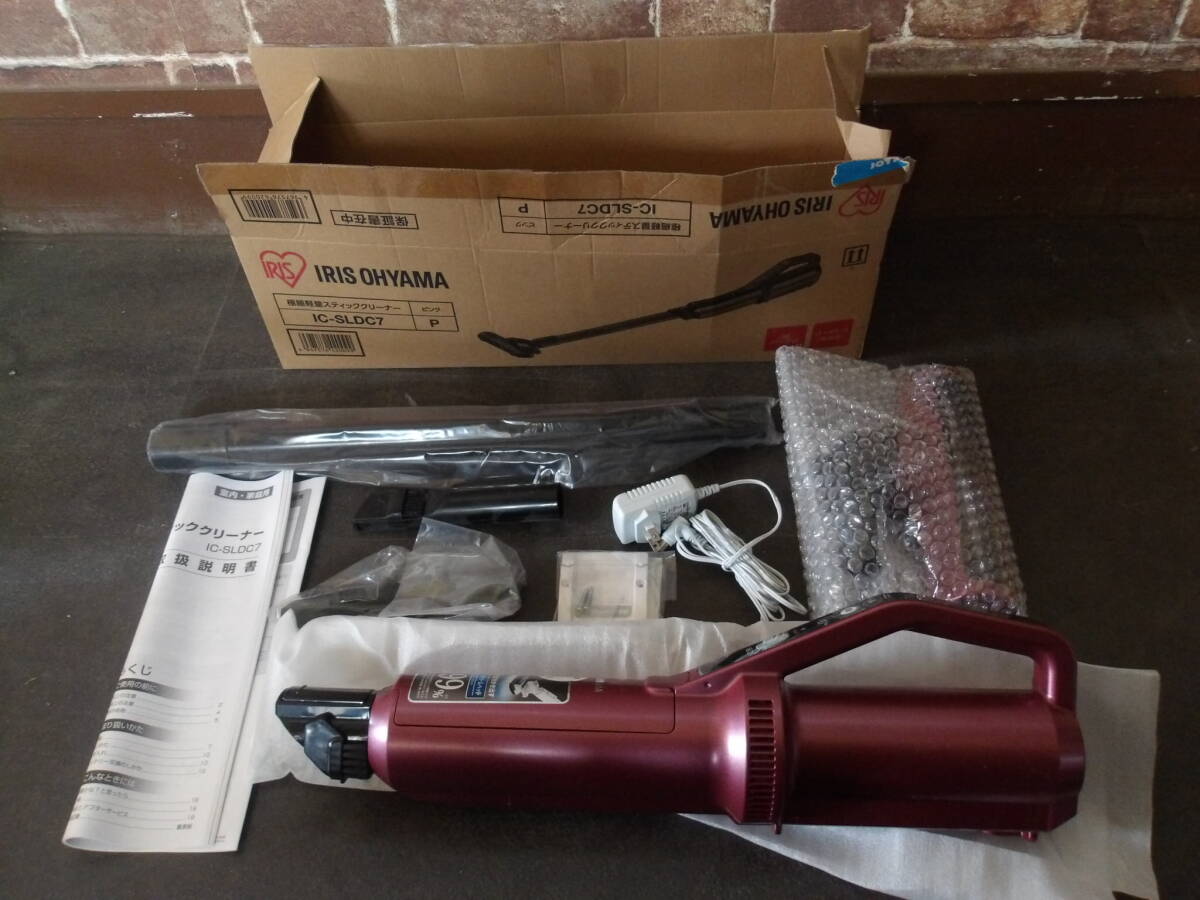 - 【4230】動作確認済 未使用(?) アイリスオーヤマ 充電式掃除機 極細軽量スティッククリーナー IC-SLDC7-P 2020年製 恐らく完品 ハンディ