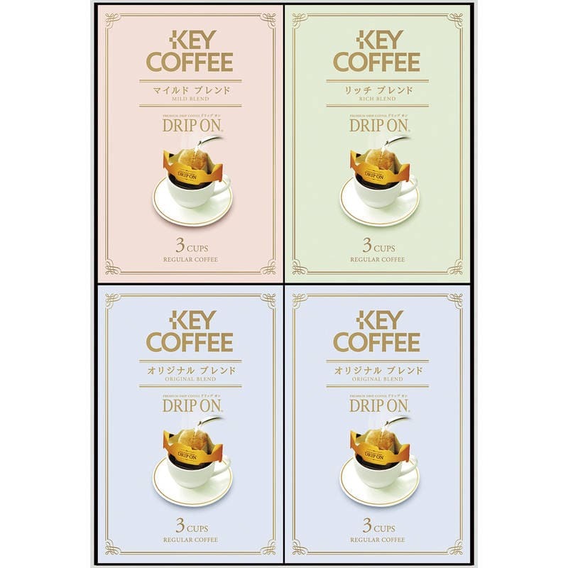 ▼▼▼▼▼▼注意事項▼▼▼▼▼▼・送料込み(送料800円が商品価格に含まれています) 一部地域では追加送料あり。・お取り寄せ商品です。弊社にて手配後、メーカー・卸業者からの直送になります。・まれにメーカー欠品、出荷遅延等が発生致します。問題発生時は別途メールにてご連絡致します。・配送方法の指定、日時指定、置き配、ギフト対応、他商品との同梱配送などは対応できません。・まとめ買いや複数購入の場合は通常より発送に時間が掛かる場合がございます・複数個口の場合、2階以上への搬入ができない場合があります。(その場合は1階での受け渡しとなります)・大型連休、お盆、年末年始などは発送をお休みさせていただく場合がございます・メーカー都合により、パッケージは予告なく変更される場合がございます・梱包用のダンボールはリサイクル品を使用させていただきます。・注文に関するご連絡(注文確定通知・発送通知など)はメールでご案内させていただきます※商品ページの内容について、少しでもご不明な点などがございましたら購入前に一度ご連絡ください▲▲▲▲▲▲注意事項▲▲▲▲▲▲〇商品説明“挽きたての香り”と“格別なおいしさ”をお届けするプレミアムドリップコーヒー「ドリップオン」。〇商品仕様【パッケージサイズ】207×47×308mm【内容】オリジナルブレンド8g×3p×2、マイルドブレンド・リッチブレンド各8g×3p×各1【生産国】日本【パッケージ形態】化粧箱入【保存方法】常温【賞味期限】製造日より約540日(出典:キーコーヒー)