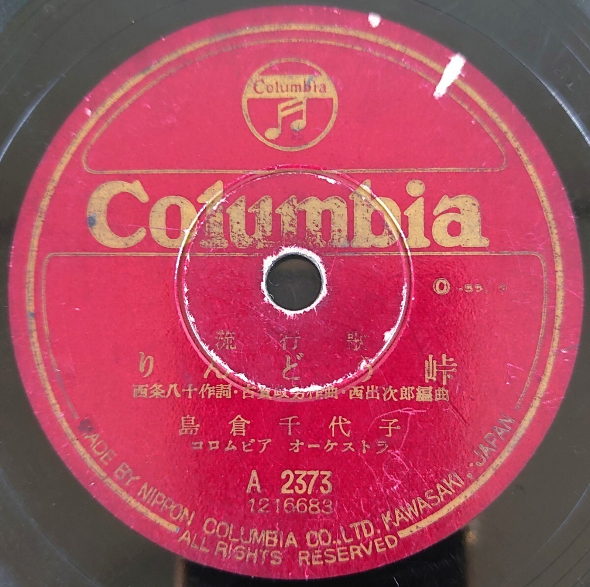 - 【SP盤レコード/縁欠】Columbia A2373 流行歌/りんどう峠/布良の娘/島倉千代子