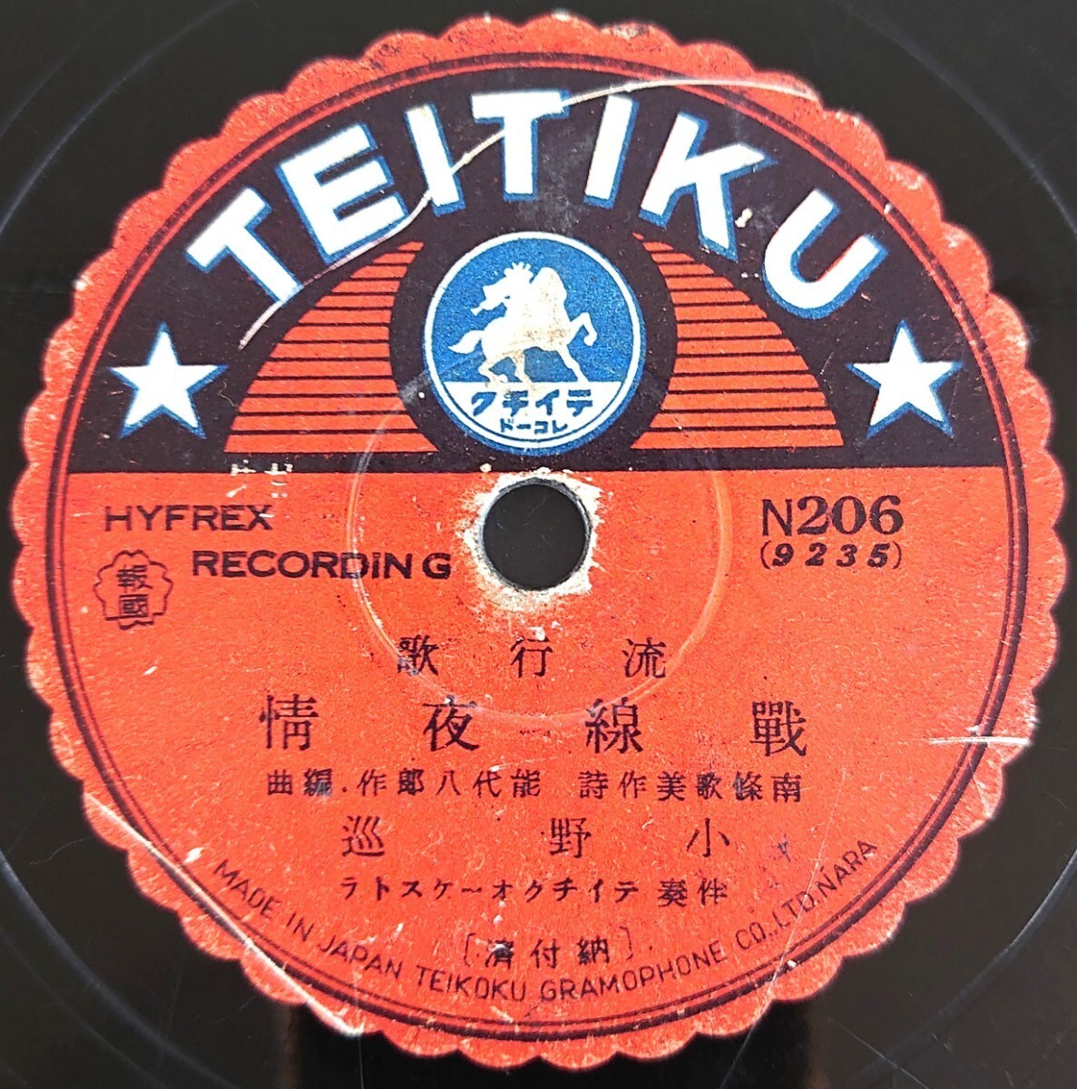 - 【SP盤レコード】TEITIKU N206 流行歌/戰線夜情戦線夜情/西湖の月/小野巡