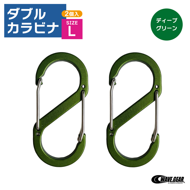 - カラビナ ダブル L 2個入 KP-517 ディープグリーン 66×30×4mm 釣り 小物 鍵専用 WAVE GEAR