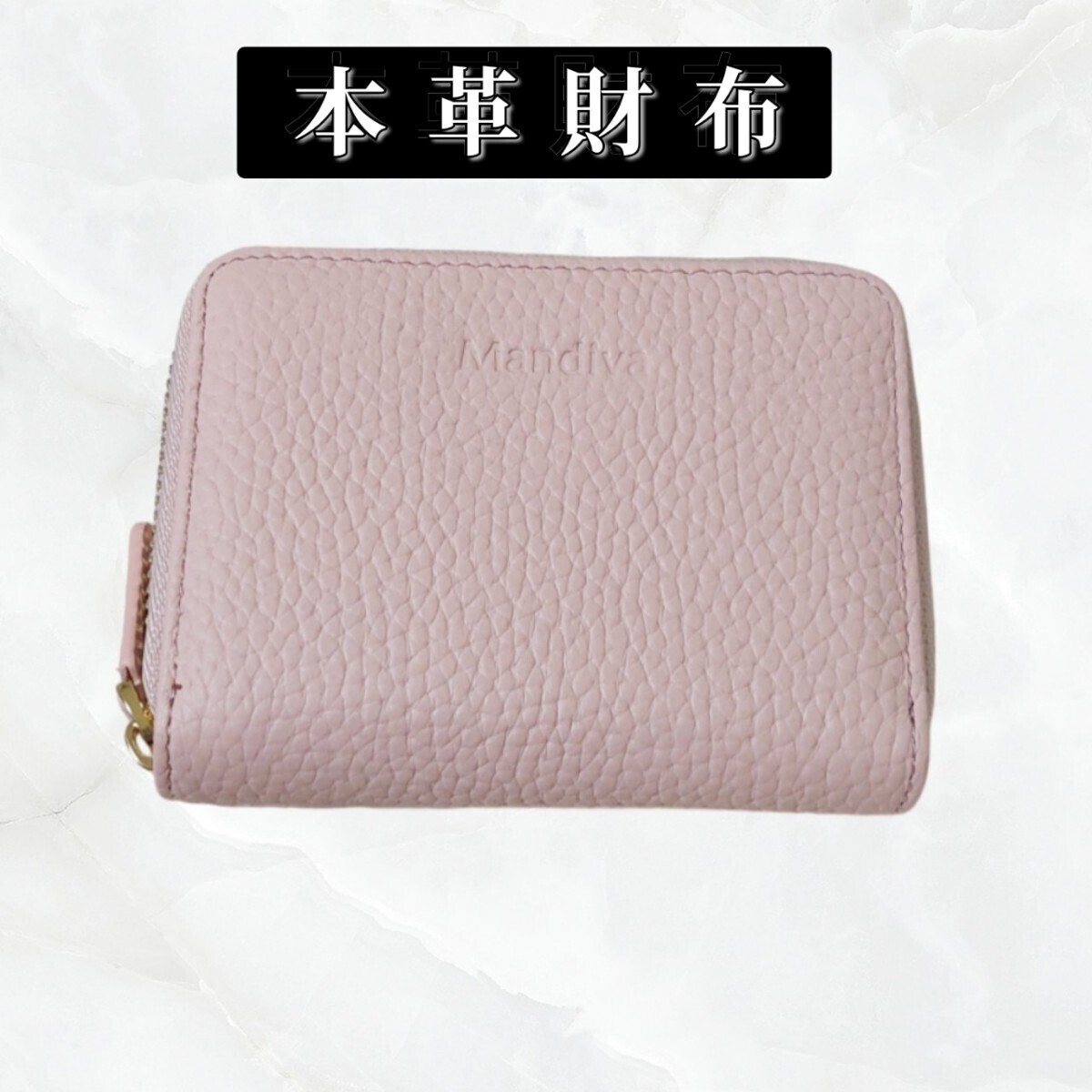 - 本革財布 二つ折り ウォレット スキミング防止 コンパクト ピンク ミニ財布 コインスルー キャッシュレス 20代 30代 レディース
