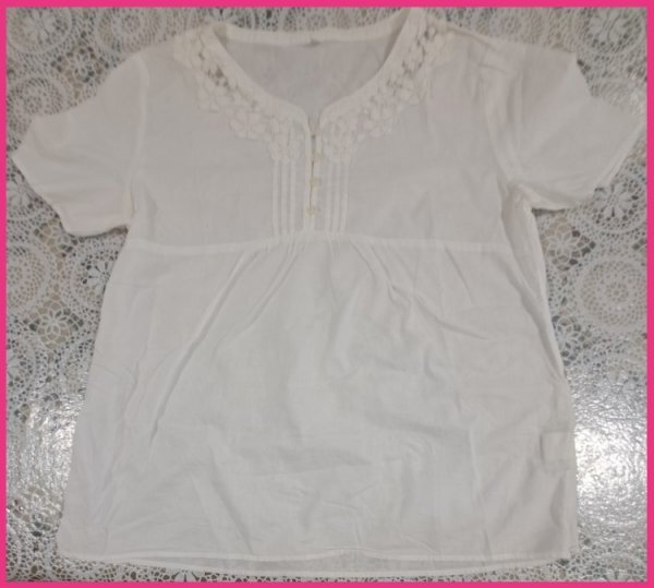 - 【送料無料:レース ブラウス:白・ホワイト】★半袖:M:レディース:お得 橋本