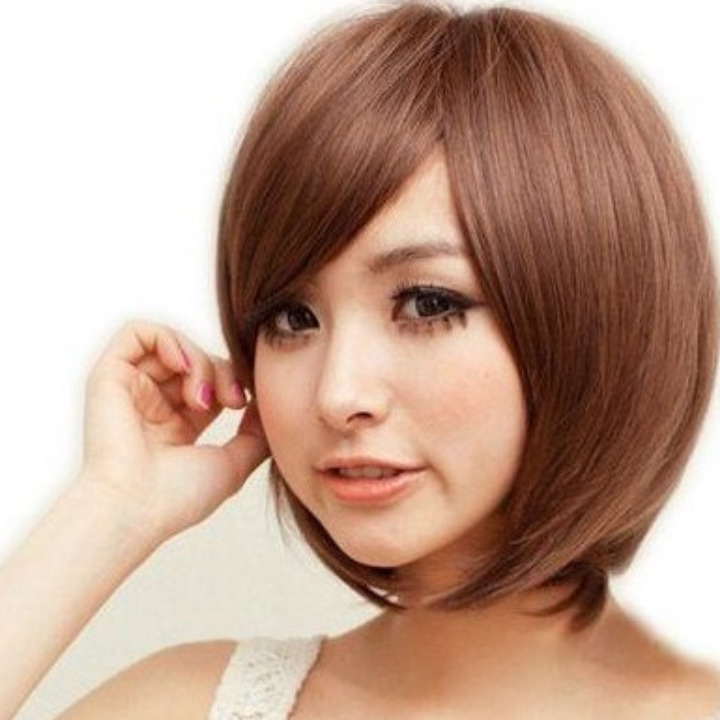 - ライトブラウン 前髪斜め さらさら ボブ フルウィッグ ウィッグ 自然 医療用 かつら ふんわり 高品質 耐熱 斜め 軽い WIG レディース
