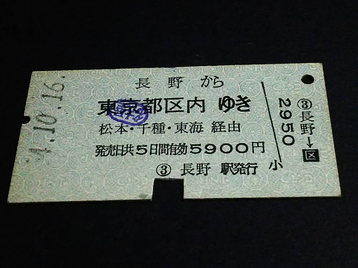 - 【[迂回]乗車券(A型)】 ★篠ノ井線~(長野から東京都区内)松本・千種・東海経由 S54.10.16