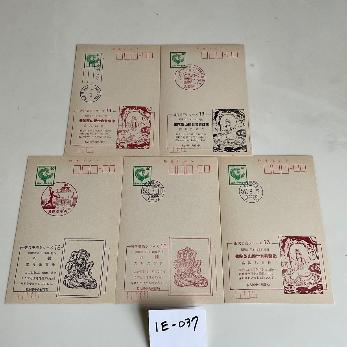 > ★記念はがき★近代美術シリーズ★冨岡鉄斎★高村光雲★昭和57年★老猿★蔵出し★1E-037★5枚組★