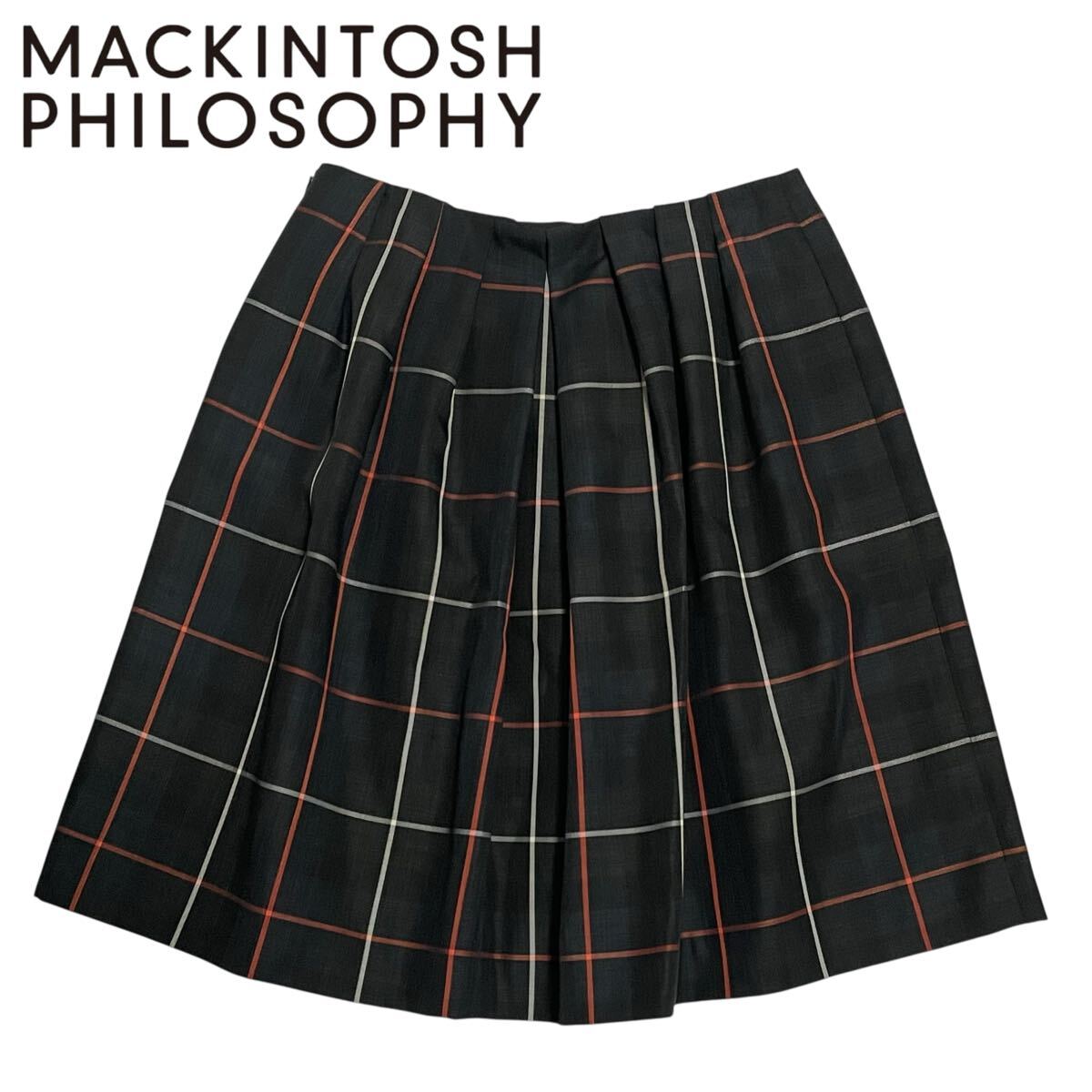 > マッキントッシュフィロソフィー /MACKINTOSH PHILOSOPHY ひざ丈 フレアスカート 黒×赤×灰 チェック柄 38 雨強 O-2529