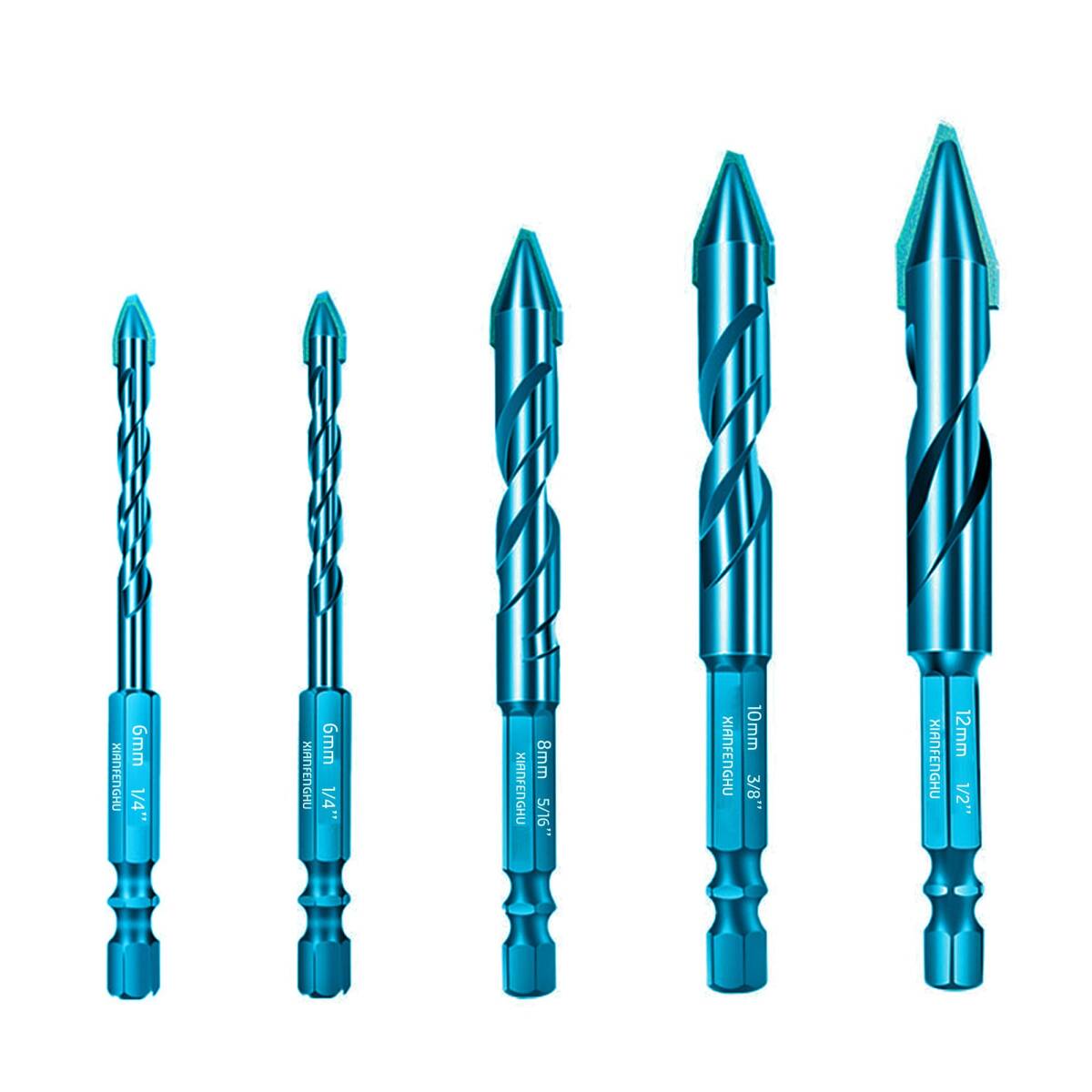 - 【特価商品】5個入りセット 12MM 10MM 硬質合金 8MM 陶器・ガラス・タイル用ドリルビット 6MM 6MM (ブルー)