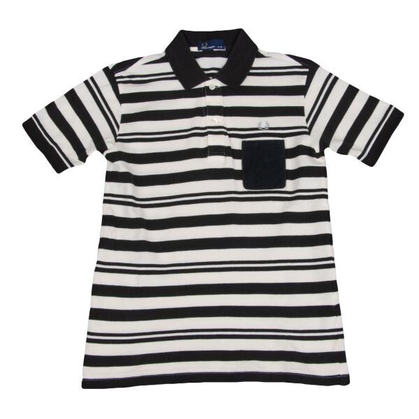 - フレッドペリーFRED PERRY ポイント刺繍パイルポケットボーダーポロシャツ 黒オフXS