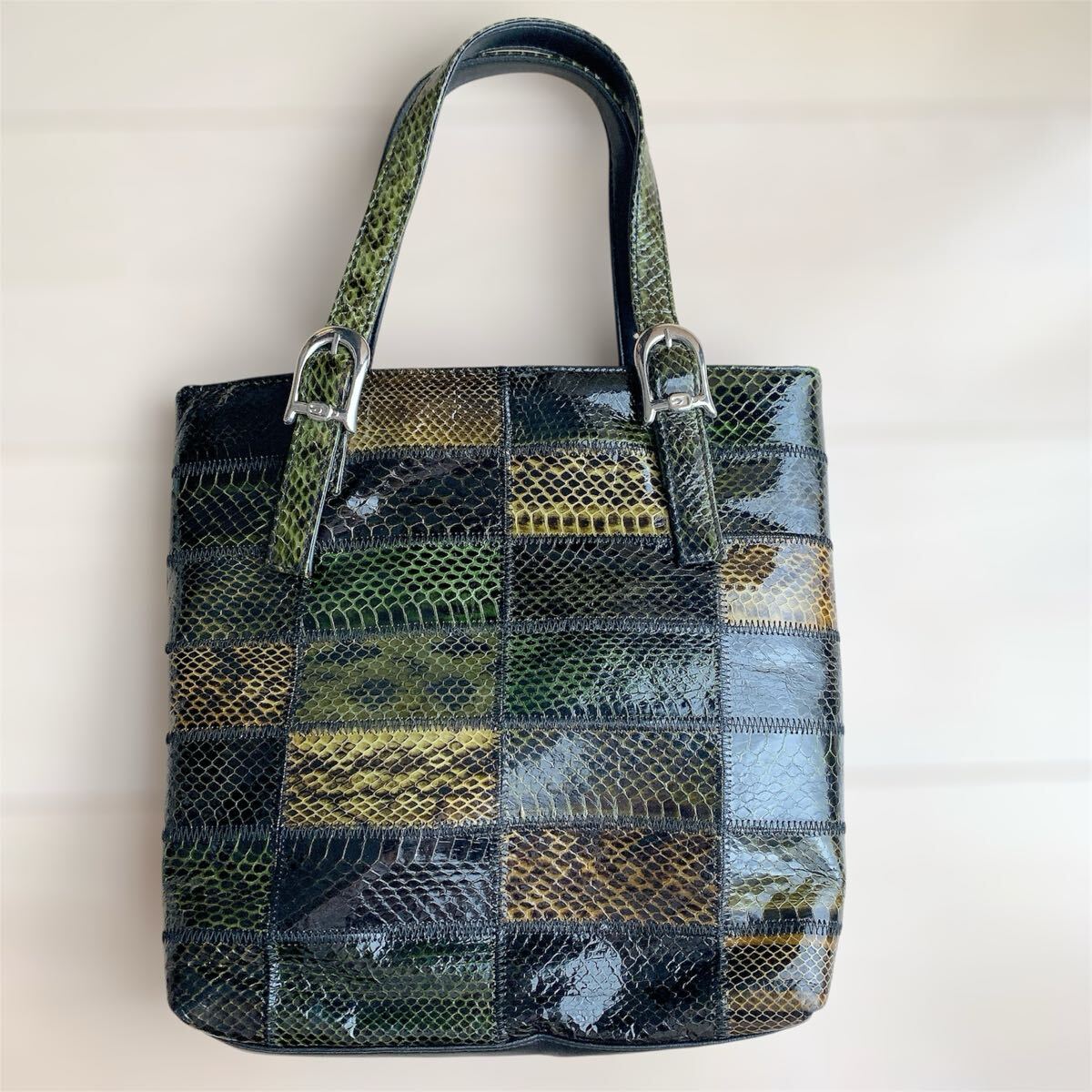 - ヘビ革 ハンドバッグ 開運 バッグ パッチワーク スネーク ヘビ グリーン ヘビ革バッグ 和装にも レザー