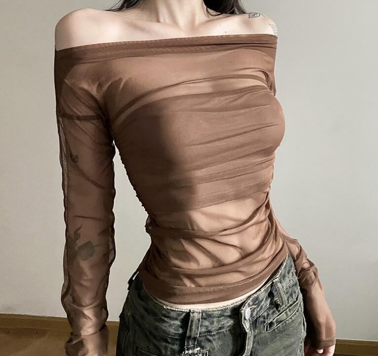 - M0804 カットソーレディース● 20代30代40代 sexy 着心地抜群● 大活躍 長袖 コーヒー