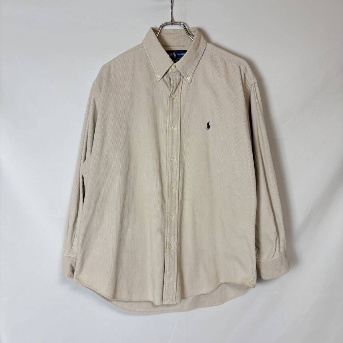 > 90s 00s 正規品 Ralph lauren BLAKE ラルフローレン ワンポイント ポニー刺繍 コーデュロイ ボタンダウン 長袖シャツ ポロ ベージュ系 L