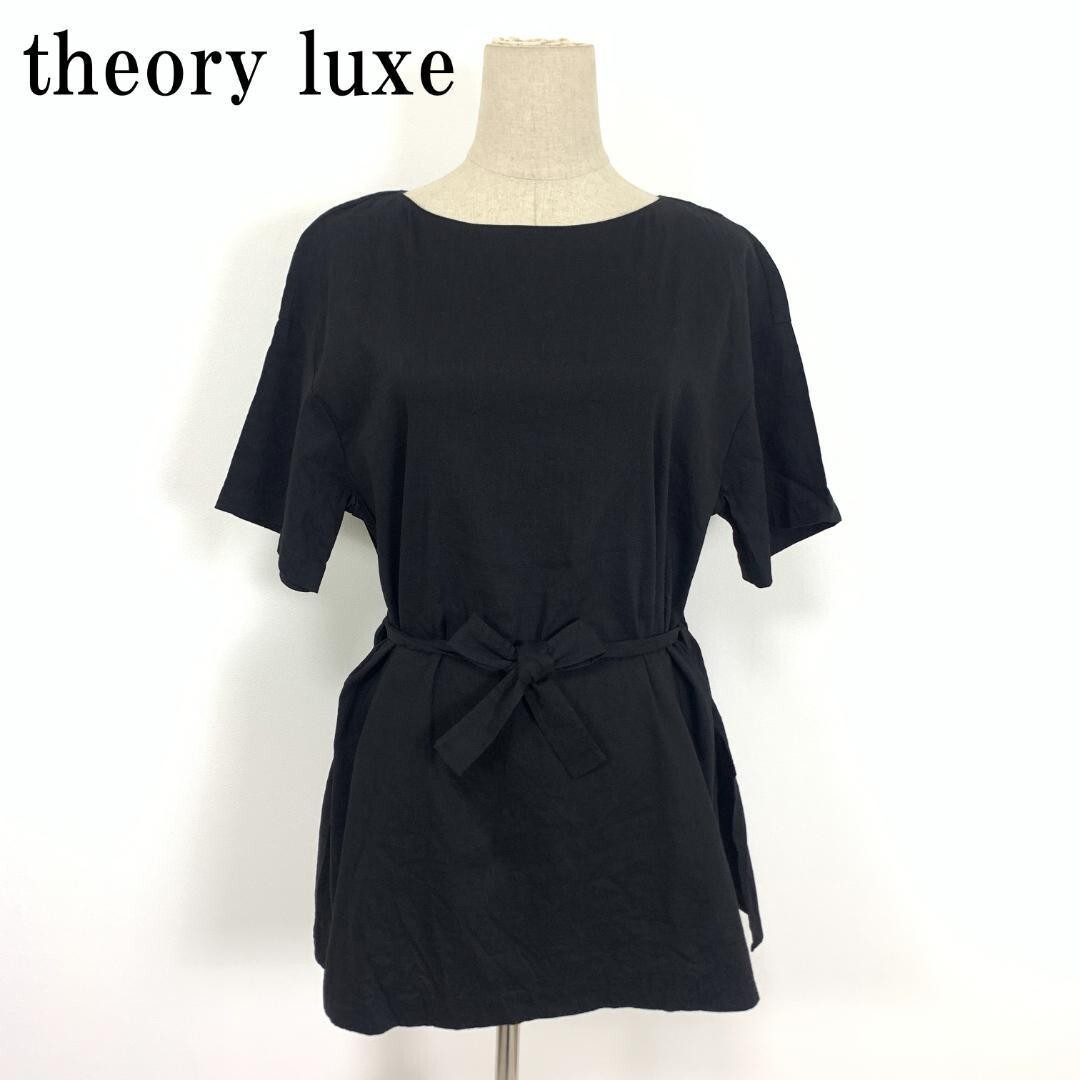 - LA7199 セオリーリュクス 麻 半袖ブラウス チュニック theory luxe サイドスリット 紐リボンブラック 38