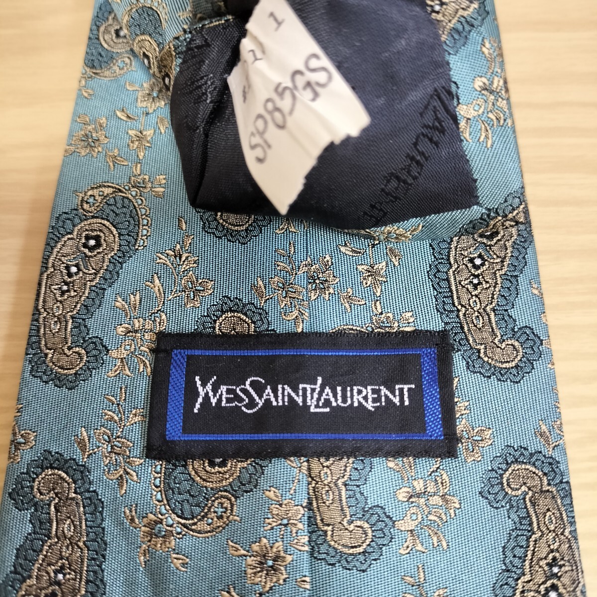 - イヴサンローラン(YVES SAINT LAURENT)青緑葉っぱ涙デザインネクタイ