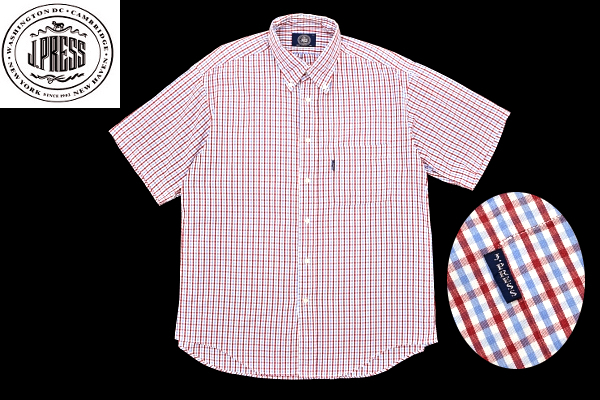 - Y-9299★送料無料★J.PRESS J.プレス (株)オンワード樫山★日本製 トリコロール チェック柄 ボタンダウン 半袖 シャツ L
