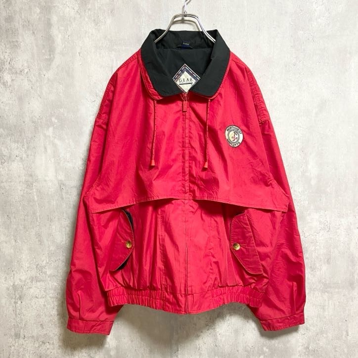 - 古着 used GEARFORSPORTS 長袖ジップアップナイロンジャケット ワッペン bartlett 赤 レッド Lサイズ