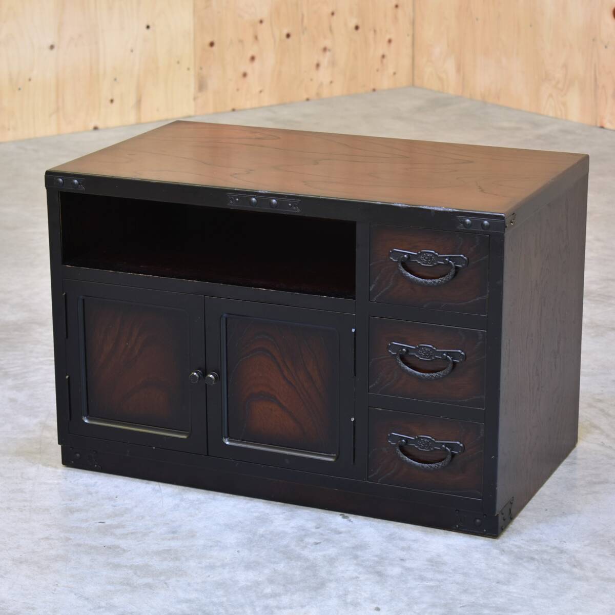 - zyt2382ジ 三丸家具工芸 和箪笥型テレビ台 幅75cm 高さ50cm 和風/TVボード/ローボード/欅/三丸民芸/大川家具『仙台市 引取歓迎』70731-15