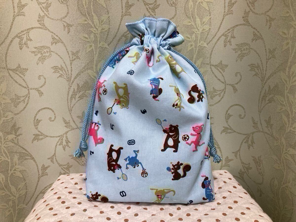 - 巾着 巾着袋 昭和レトロ 当時物 レトロ生地 動物 スポーツ マチあり レア ハンドメイド