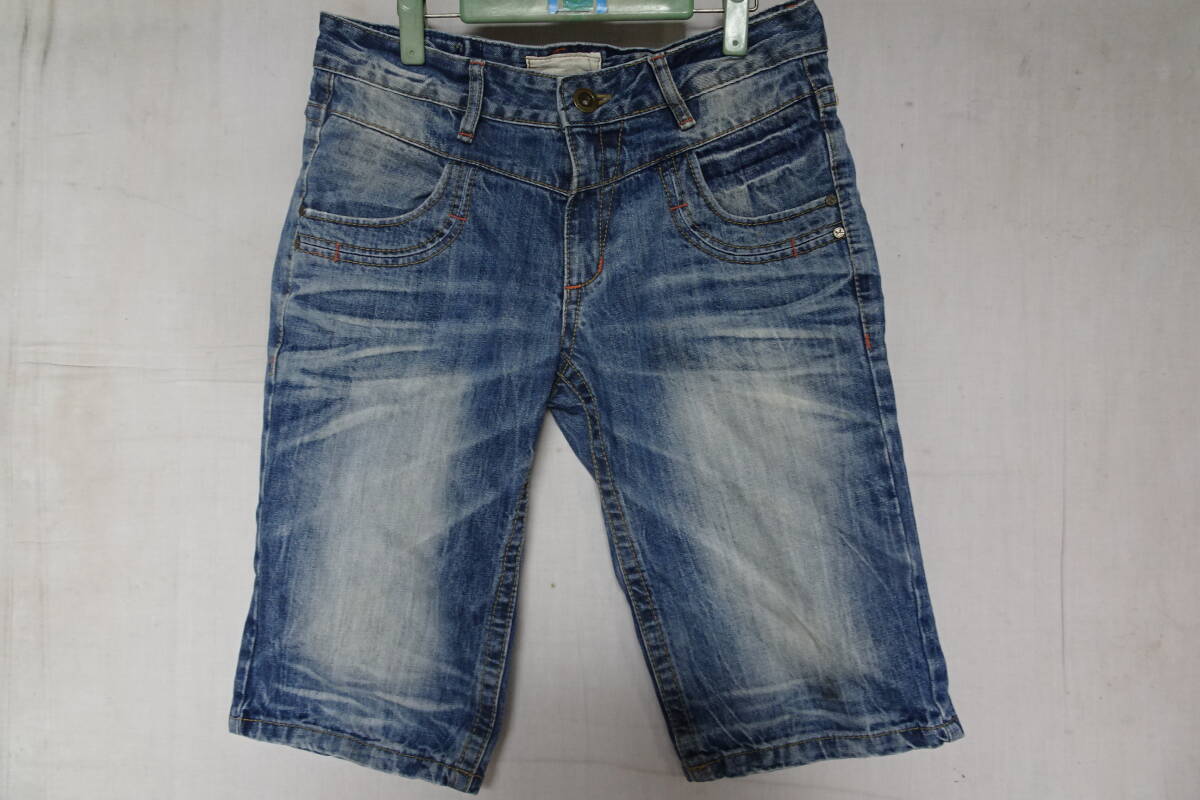 > LOLITA JEANS/デニムショートパンツ/ひざ上丈/ジップフライ/色落ち加工/後フラップポケット/スタッズ/インディゴブルー/31インチ(8/5R7)