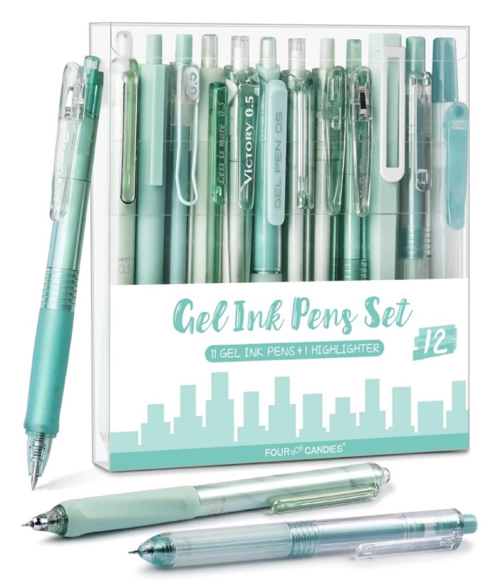- Four Candies 12本パステルゲルインクボールペンセット 11本ジェルボールペン&1本蛍光ペン 引き込み式 0.5mm かわいい