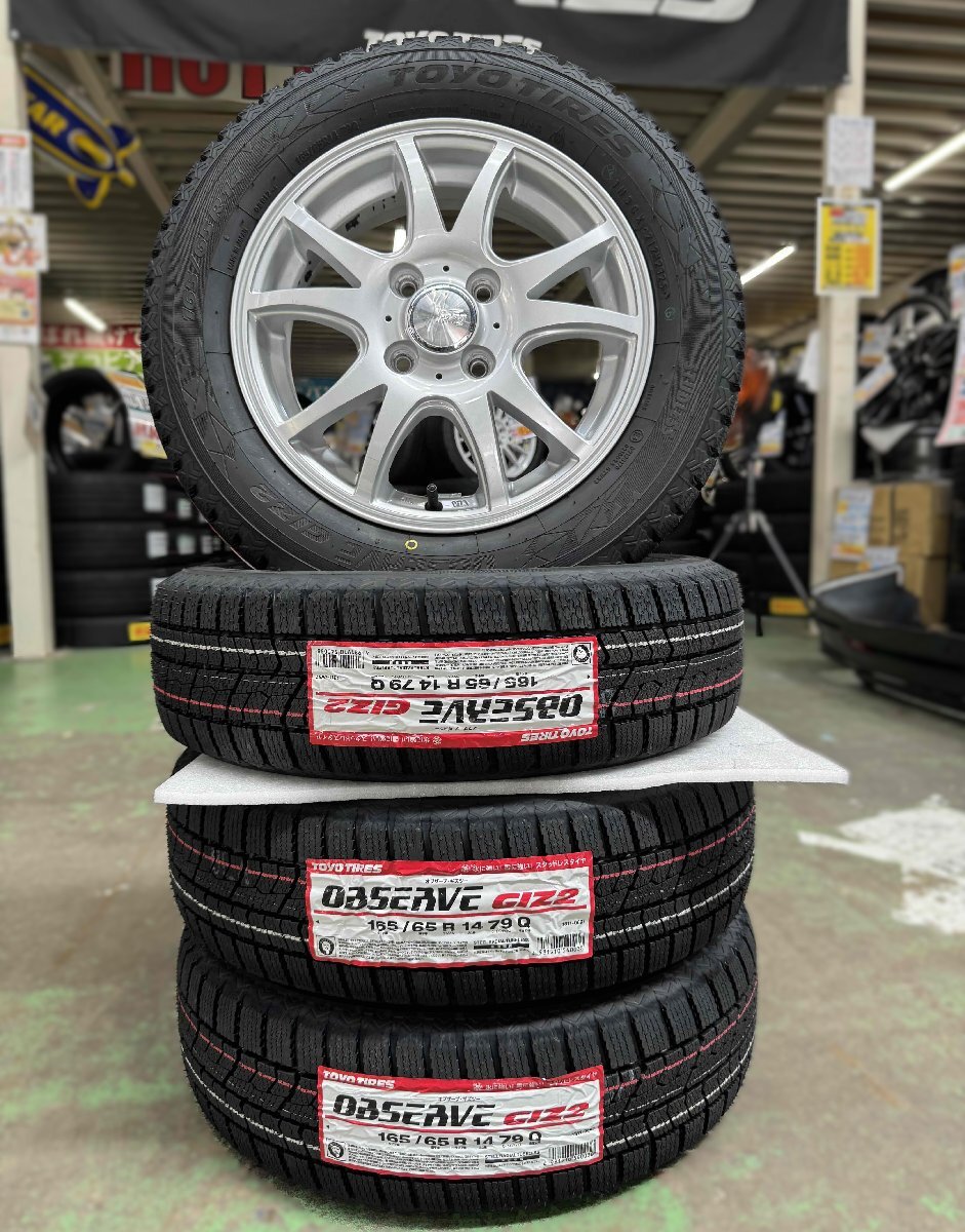 - ソリオ デリカD:2 ジャスティ etc. [新品スタッドレス] 165/65R14 TOYO オブザーブギズ2 2025年製 + [中古] 14インチホイール 4本セット!