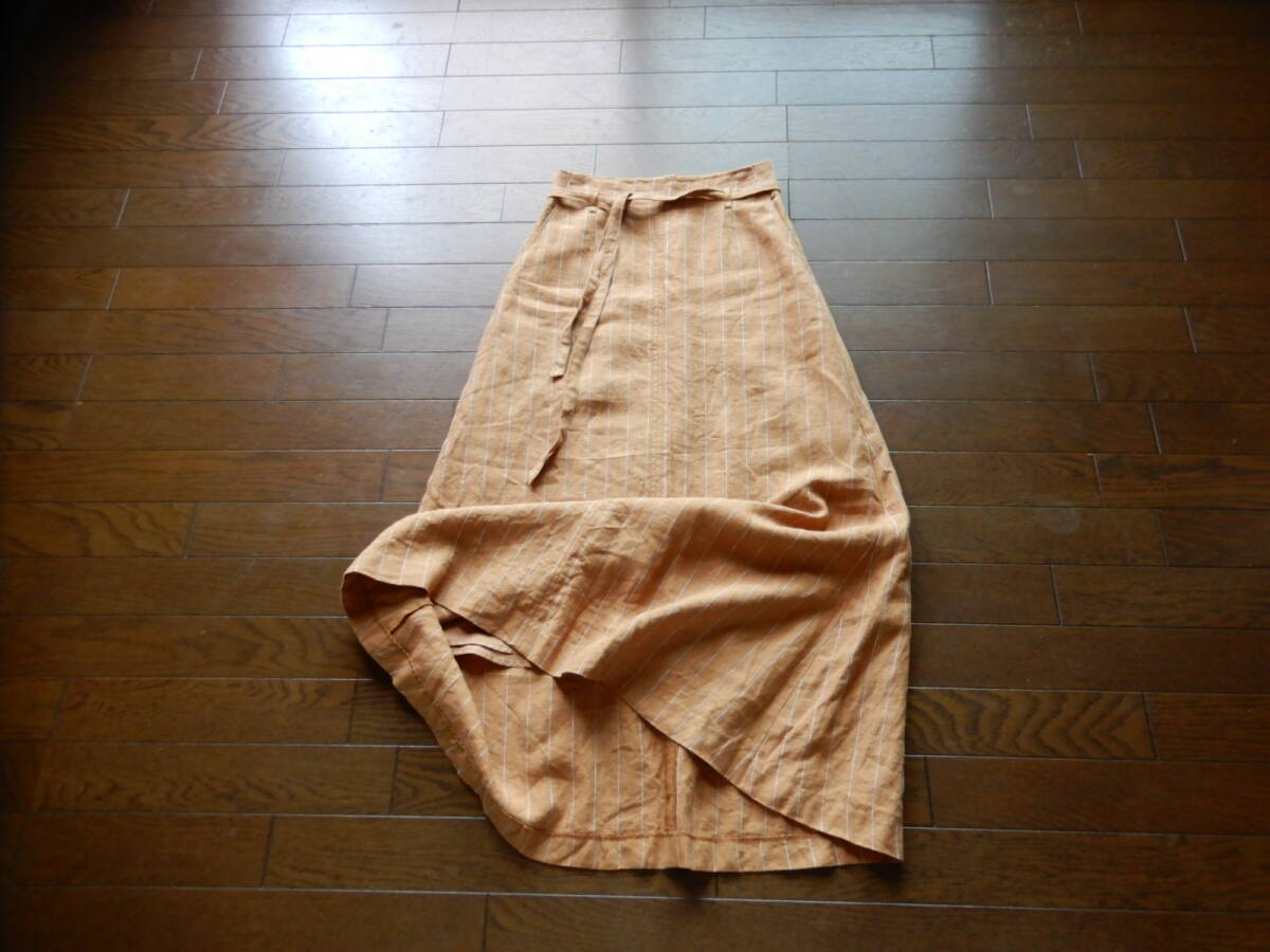 - 【NANO universe/ナノユニバース】36 リネン大人可愛いストライプ柄キャメルロングフレアースカート 裏地付き 麻