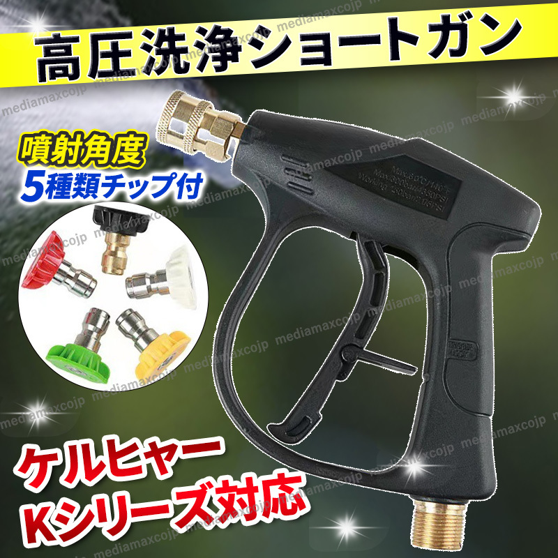 - ショートトリガーガン ケルヒャー高圧洗浄機互換 クイックコネクト ウォッシャーガン 5段階ノズル 洗車 階段 外壁 ベランダ メンテナンス