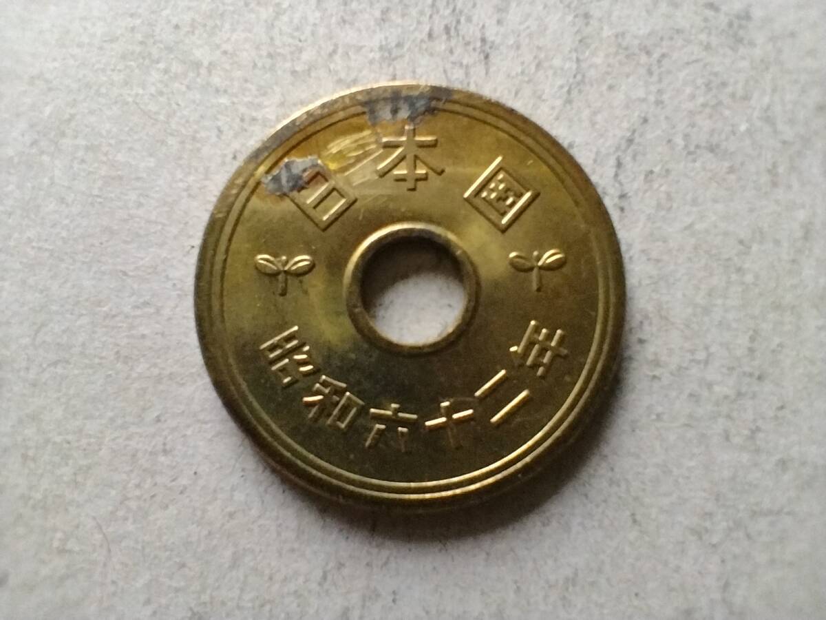 - 昭和62年 5円玉 5円硬貨 昭和六十二年 1987年 一九八七年 五円硬貨 五円玉 5円黄銅貨 コイン メダル 貨幣 硬貨 黄銅 真鍮 ブラス 即決