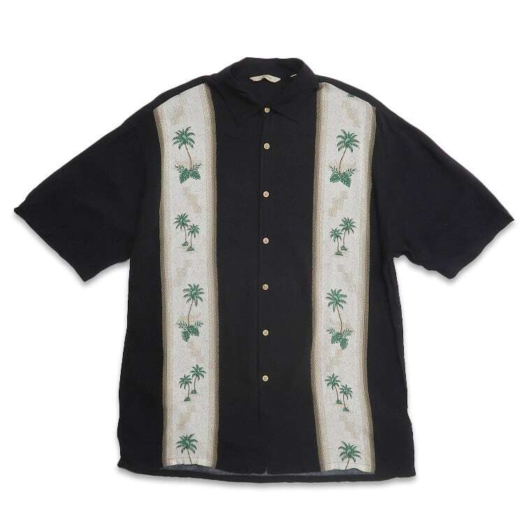 - 古着 Paradise Collection レーヨン アロハシャツ ハワイアンシャツ ブラック 表記:L gd406858n w50801