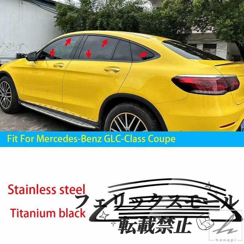 > メルセデスベンツ GLCクーペ X253 C253 (2016-2021) 対応 ブラック 外装 ウィンドウモール トリムカバー 10ピースセット カーアクセサリー