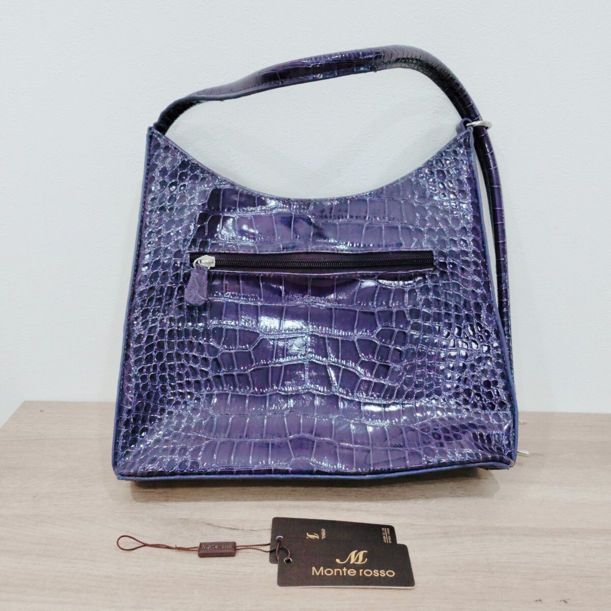 - Monte rosso ハンドバッグ 合成皮革 クロコダイル調 パープル レディース