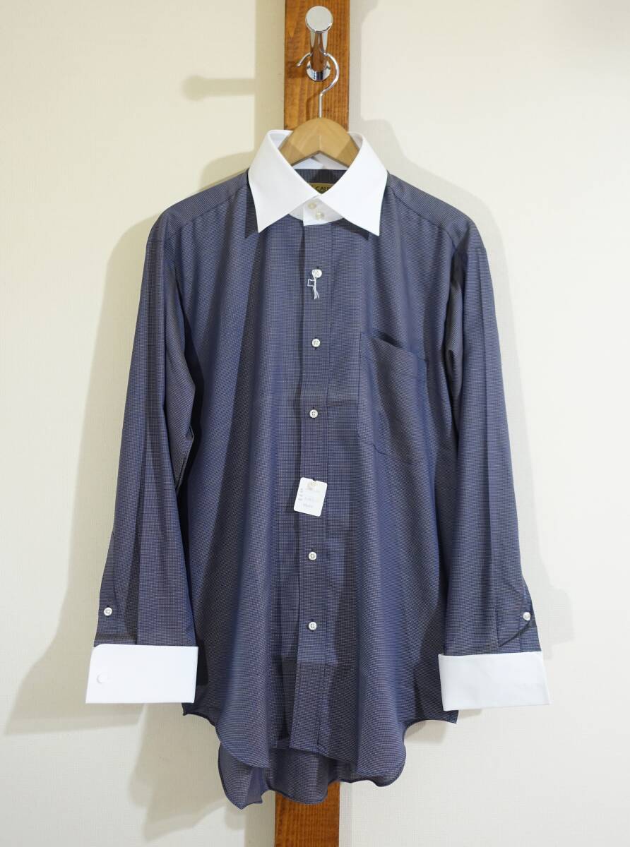 > 未使用品★BILL CAUSE◆シャツ ワイドカラー ドゥエボットーニ 織り柄 ダブルカフス トミヤアパレル株式会社