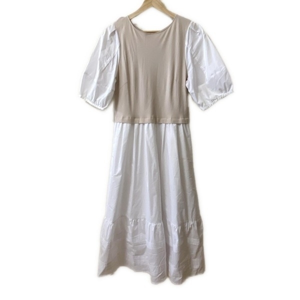 > ジャスグリッティー JUSGLITTY サイズ2 M - 白×ベージュ レディース クルーネック/七分袖/マキシ丈 ワンピース
